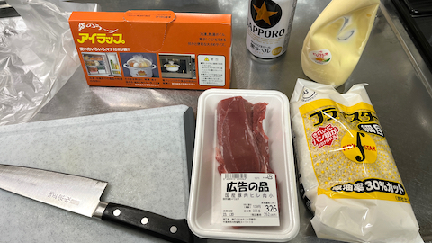 ツマミ作り。スーパーで買って きた豚ヒレ肉を5mmくらいに そぎ切りして塩胡椒してビニー ル袋に入れて、多めのマヨネー ズとパン粉も入れて揉む。ビニ ール袋は丈夫なイワタニの↓ | ![]() |