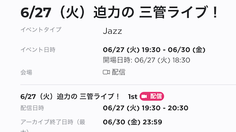 今週の日曜日の22日、19時 &20時から単音トリオのライ ブがあります。今回のゲストは ボーカル&バイオリンの深澤彩 。配信もあって、1ヶ月間何回 でも見られます。ぜひ。 配信ページ | ![]() |