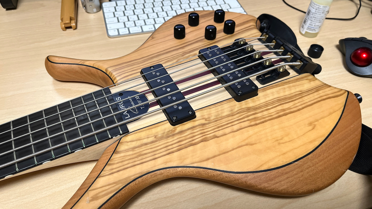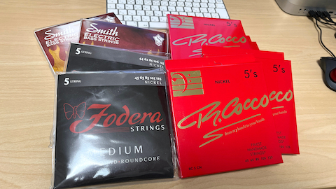 昨夜出来なかったので朝起きて すぐ弦の張替え。前に4,5弦 のみテーパー弦張ったらビビり が出てブリッジいじったのでそ の調整も含めじっくりやった。 純正弦はやっぱ安定してる。 | ![]() |