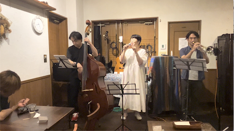 毎月やってる単音トリオのライ ブは、来てくれたお客さんと配 信視聴のお客さんに大感謝。今 回のゲストはボーカル&バイオ リンの深澤彩。素晴らしい演奏 で盛り上げてくれた。 演奏動画1 演奏動画2 |