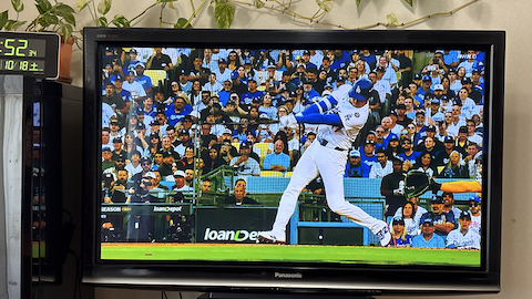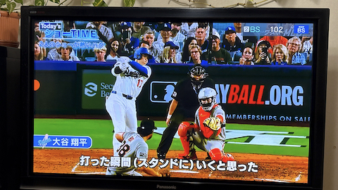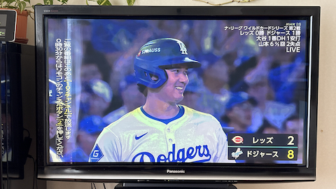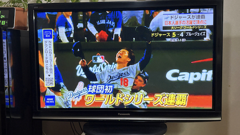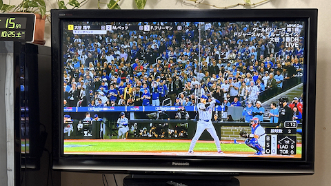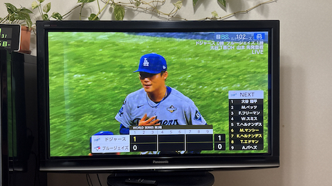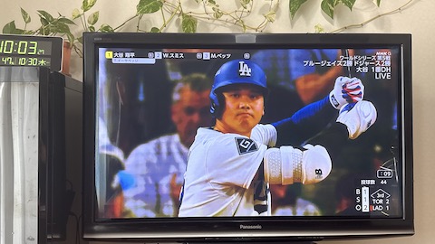 8時に起きてシャワーして、ド ジャースとブルージェイズのワ ールドシリーズ第2戦を30分 だけ観た。1回表にドジャース が1点取って、山本投手がピン チを切り抜けて2回へって↓ |