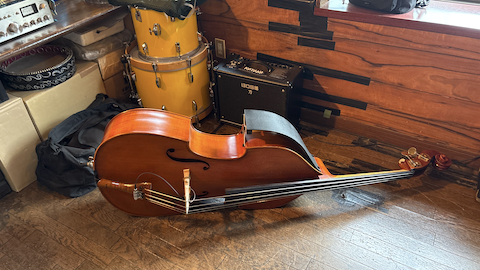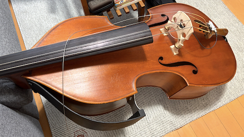レッスンの休憩時間に毎月やっ てる単音トリオの配信おまけ動 画を撮った。ヤマハ池袋の備品 のSLB300、弦を標準のヘ リコアからプレリュードに張り 替えて弾きやすくなった。 |