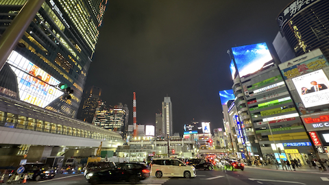 21時半前くらいの銀座線渋谷 駅入口から見る246号方面。 この辺りはバスとタクシーだら け。つか今日は昼は風が強くて すげえ寒かったけど、夜も冷え 込んでてすげえ寒い。 |