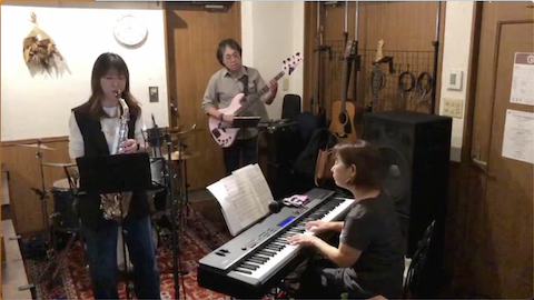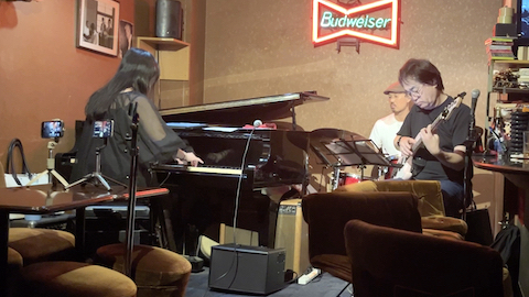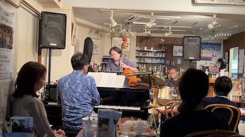 シン・トリオのライブはたくさ んのお客さん&配信視聴のお客 さんに大感謝。ギター尾崎ショ ージ氏のオリジナル曲を演奏。 このトリオは気に入っているの で演奏がとても楽しい。 演奏動画1 演奏動画2 演奏動画3 | ![]() |