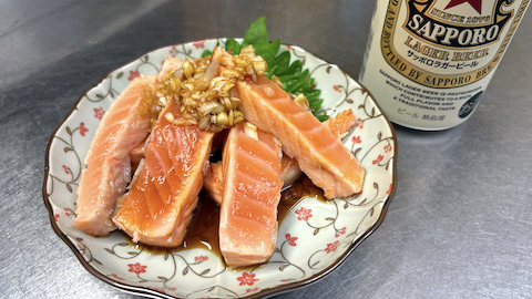 買い物行って少し仕事して夕方 からツマミ作り。サーモン&ブ リの刺身を細かく叩いて味噌と 生姜チューブを入れ更に叩いて なめろう完成。玉ねぎをみじ ん切りにして片栗粉を↓ 大きな写真 |