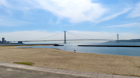 軽く食べられてしまう。その後 車で10分くらいの大蔵海岸公 園へ。ここは明石海峡大橋が目 の前に見られる巨大な公園。す ぐ近くにJR朝霧駅がある。め ちゃめちゃ暑かったんだ↓ 大きな写真 大蔵海岸公園2 大蔵海岸公園3 大蔵海岸公園動画 |