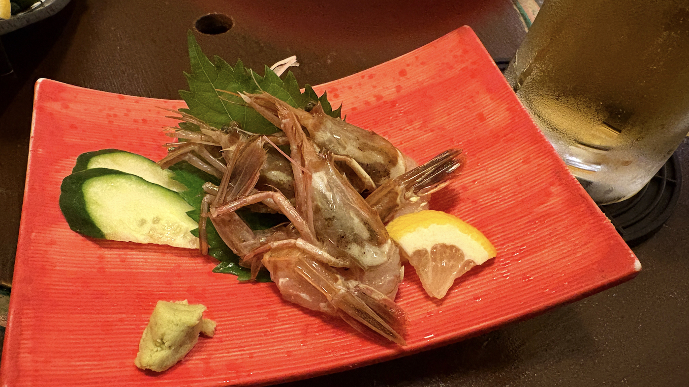 した明石の魚、嵜へ。明石に来 るのは3回目で、前回立ち寄っ て最高だったので再訪。今回は 明石の生しらすとカワツエビが 激うま。後はホテルで部屋呑み して21時半ごろ爆睡。 カワツエビ串揚げ 明石産生しらす 刺し身盛り合わせ 店の外観 GoogleMap |