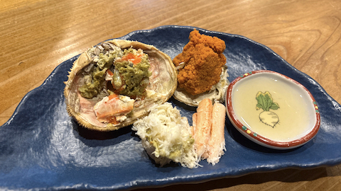 なめろうが絶品で悶絶。ザス( カジキ)の刺し身もうまい。何 よりイカとゴボウかき揚げがう ま過ぎた。日本酒呑みまくって 部屋呑み用に棒寿司買った。い や素晴らしい店。絶対また↓ 甲箱ガニ 加賀蓮根天ぷら イカとゴボウかき揚げ やまいも天ぷら 店の外観 | ![]() |