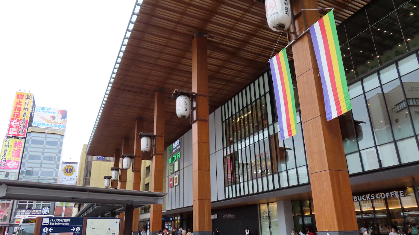 越道に入って11時半過ぎに須 坂長野東ICで降りた。んで超 有名スーパーのツルヤに寄って 買い物。駐車場が超満員で大変 だった。13時ごろ長野駅東口 に到着。東口側は初めてで↓ 栗田緑地帯 長野駅西口 ツルヤ |