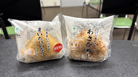 レッスン時間に飯を食うことは 滅多にないんだけど、行きの電 車の中で今日はなぜだか腹が減 りそうと思ったのでレッスン前 にファミマでおにぎり2つ買っ てった。うまかった。 |