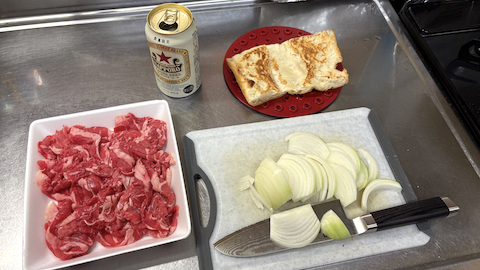 買い物に出て14時過ぎから開 始。んで予想より少し早く終了 出来た。あとは前日に軽くチェ ックすればOK。買ってきてた 和牛トモサンカクをダイスカッ トして焼いた。うまい。 大きな写真 |
