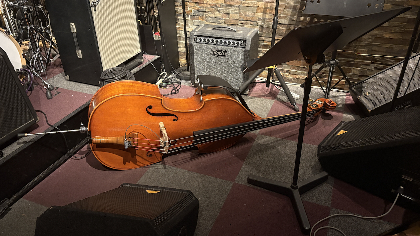 ジャズピアノ発表会のサポート 演奏。常連さんから初めて参加 の人まで皆さん素晴らしくて感 動。ミニコントラバスのネック の状態は問題ないけど前のパー ペチュアルの方がいいかも。 |