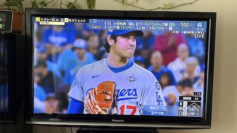 今日はドジャースとブルージェ イズワールドシリーズ第7戦。 7時半に起きてシャワーと飯を 済ませ、9時から50分だけ観 戦した。大谷投手は調子悪そう だけど観てた2回まで無失↓ |