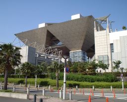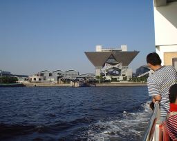 海上バス乗り場から見た東京ビッグ サイト。変なカタチ。しょっちゅう 業界向けのコンベンションをやって て不思議な感覚のビルです。屋上の レストランは絶景ポイントです。 |