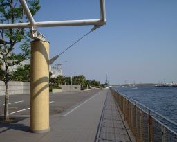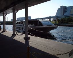 | 海上バス乗り場。ここから葛西 臨海公園や浅草など、いろいろな 所へ船が出てます。船着き場は結 構独特の雰囲気があるんですが、 ここはさすがお台場地区。とても きれいで明るい雰囲気でした。 |