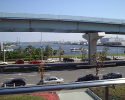 ワンザ有明の展望デッキより。 ここはお台場からちょっと離れた 国際展示場や東京ビッグサイトの 近くにある商業ビルで、高めの2F にファ−ストフ−ド店がたくさん あって、外は展望デッキになってま す。眺めもよく、いい場所です。 |